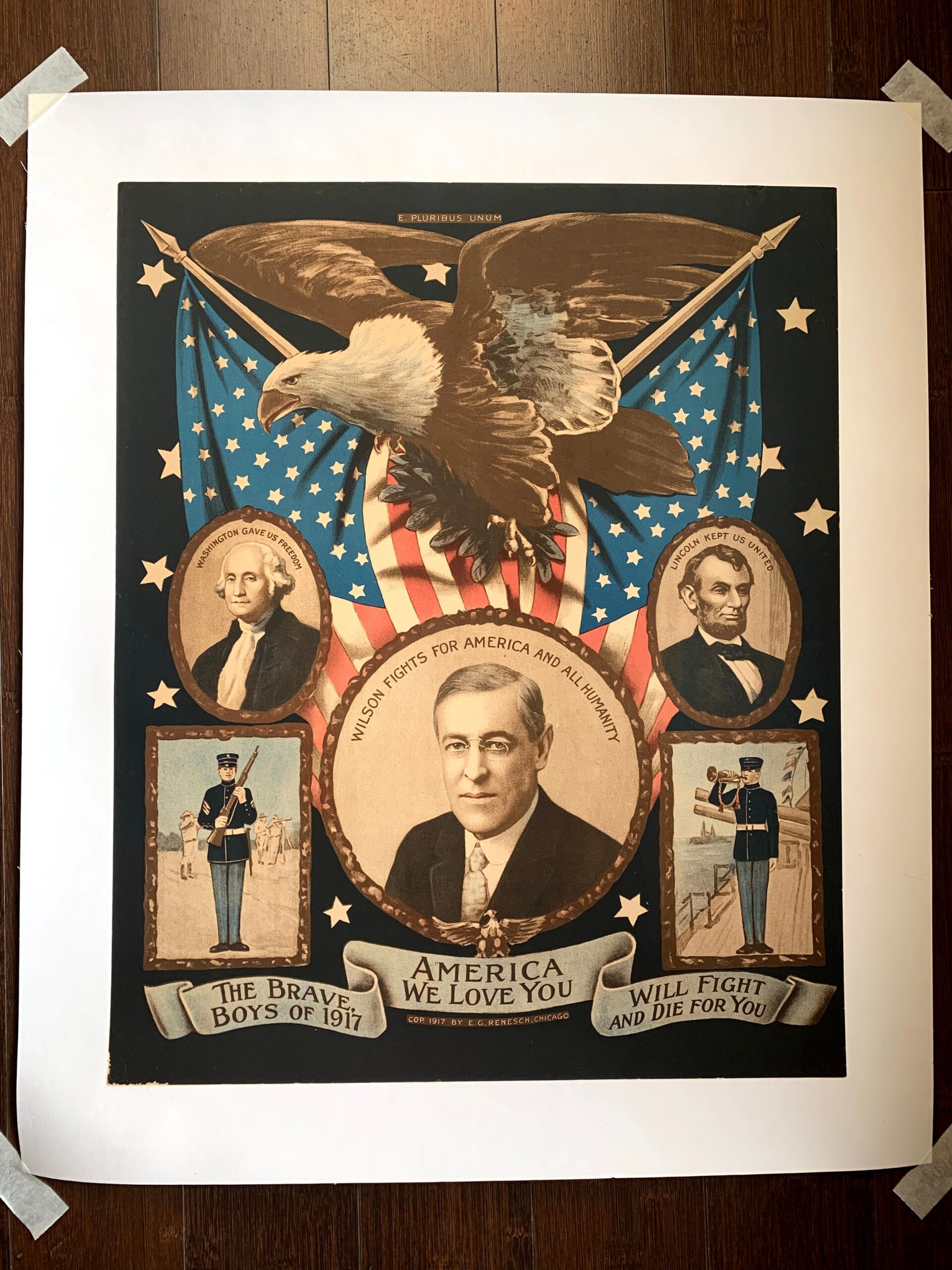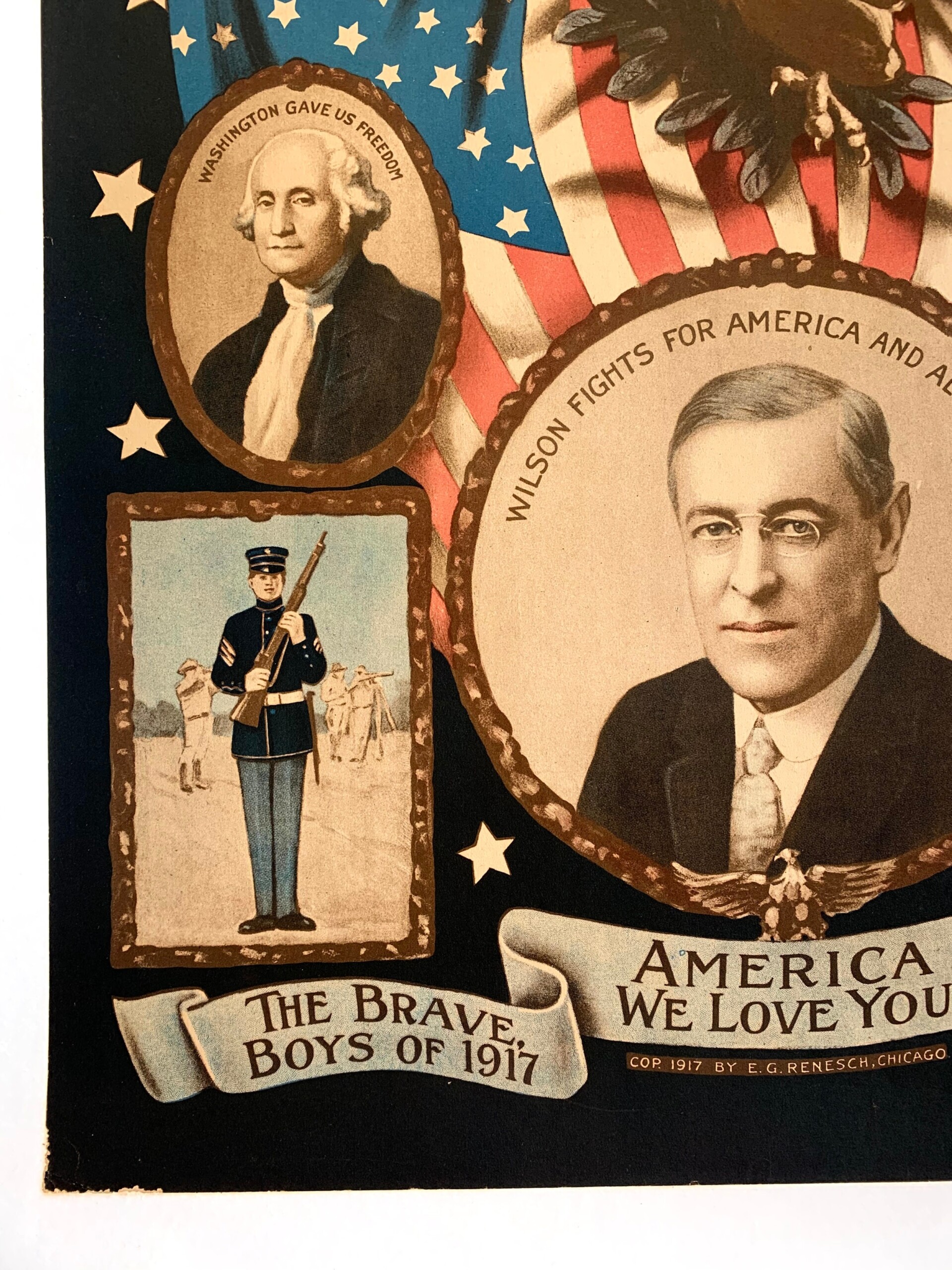 America We Love You – Wilson, Lincoln, Washington (1917) US WWI Memorial Poster LB
