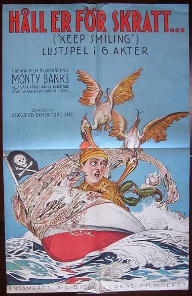 Keep Smiling (1938) Swedish Poster – Fun Cartoon Fishing Boat Artwork!