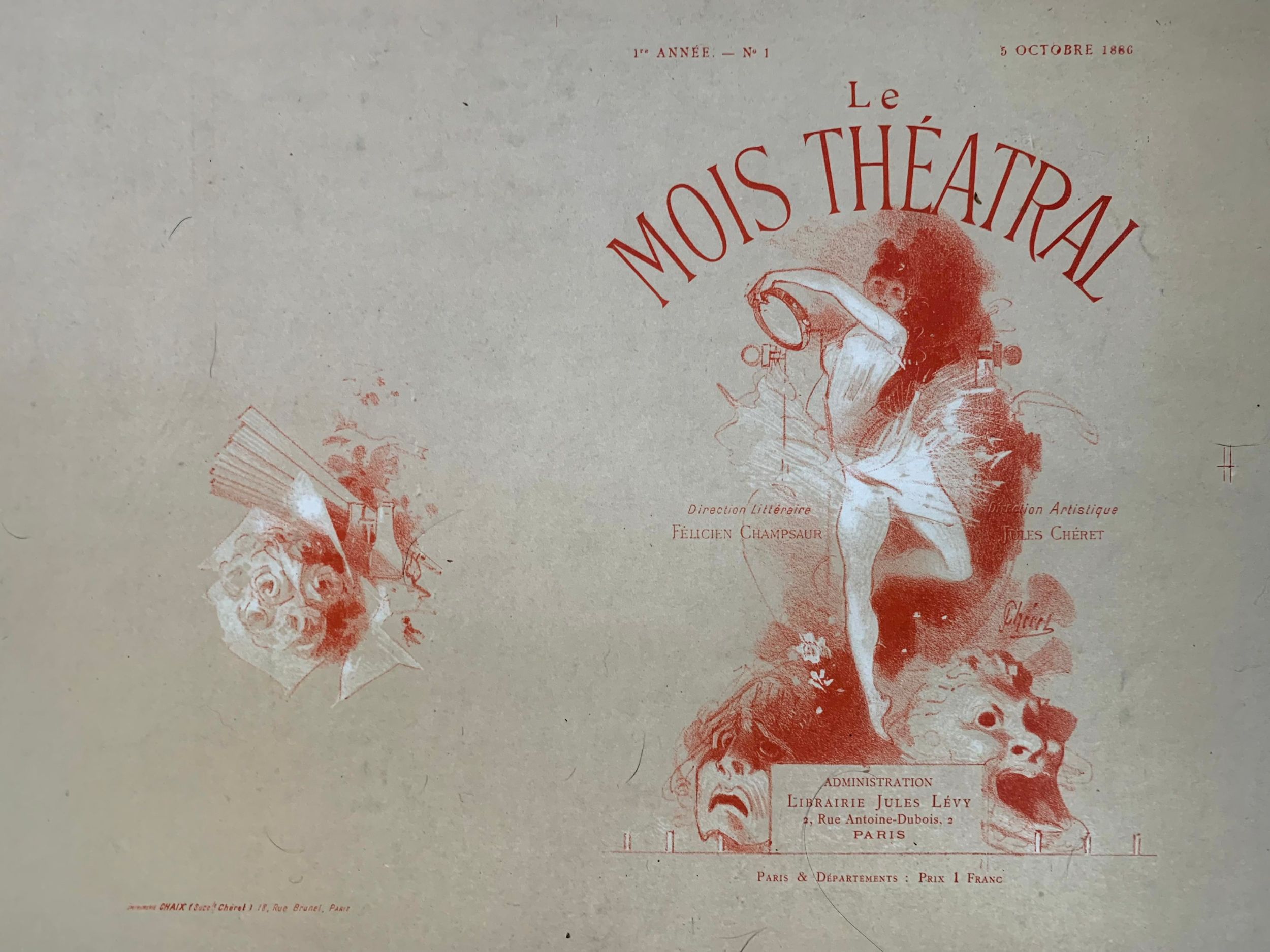 Mois Theatral – Art by Cheret (1886) 10.5″X14.5″ French Book Cover LB