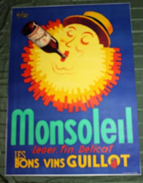 Monsoleil (France, 1936) 44.5″ x 60.5″ Advertising Poster A cheery sun with a straw hat takes a sip straight from the bottle in this original French poster advertising light, fine, and delicate wine! An original vintage lithographic poster with great bursts of color! Art by Robys. Condition: Overall displays in Great condition. Please refer to the attached image for a detailed view of this original vintage poster. And remember, your purchase is backed by our 100% Satisfaction Guarantee!