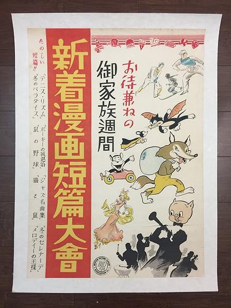 Rare Porky Pig/Mighty Mouse (1950's) 14.5" x 20.25" Japanese Movie Poster LB