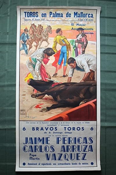 Spanish Bullfighting Poster"toros En Palma De Mallorca" (1947) 41.75" X 21"
