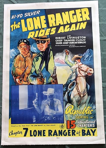 The Lone Ranger Rides Again (USA, 1939) US One Sheet Movie Poster Homesteaders are moving into the valley settled many years ago by rancher Craig Dolan. He wants to keep them out by legal means but his nephew Bart brings in outlaws to drive them out. Directors: John English, William Witney Writers: Fran Striker (basd on the radio serial The Lone Ranger by), Franklin Adreon (original screenplay) (as Franklyn Adreon) Stars: Robert Livingston, Chief Thundercloud, Silver Chief Condition: Overall displays in Great condition. Please refer to the attached image for a detailed view of this original vintage poster. And remember, your purchase is backed by our 100% Satisfaction Guarantee!