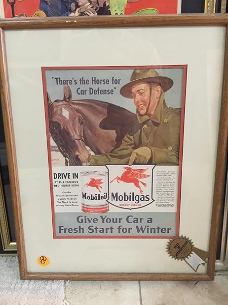 WWII Frederic Stanley Mobil Oil Can (1941) Red Horse Advertising Poster – Framed